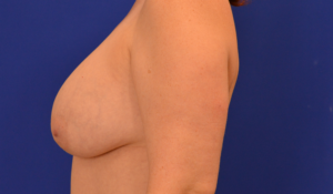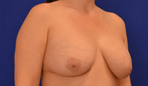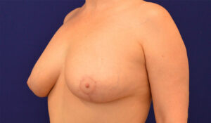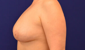 This young lady received a traditional cosmetic breast augmentation with 350 ml silicone implants placed under the muscle 13 years prior to the presentation to our office. After having children, her breasts became hard requiring release of the breast capsule in the past. Recently, she experienced dissatisfaction with the appearance and feel of her breasts, which looked disproportionate to her frame. She also desired to maintain the volume of her breasts with a technique that would not require need more breast surgeries in the future. She underwent bilateral breast lift and removal of bilateral implants with replacement using her own tissue derived from her thighs. She is very pleased with the results.